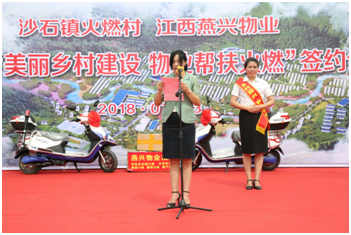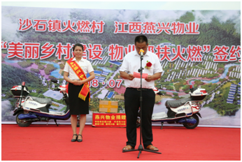 為積極響應(yīng)黨中央實(shí)施鄉(xiāng)村振興戰(zhàn)略和習(xí)近平總書記提出的“把實(shí)施鄉(xiāng)村振興戰(zhàn)略擺在優(yōu)先位置”的號(hào)召,創(chuàng)新建立村企結(jié)對(duì)幫扶機(jī)制,加快推進(jìn)火燃村美麗鄉(xiāng)村建設(shè)步伐。2018年7月13日上午,章貢區(qū)沙石鎮(zhèn)火燃村、江西燕興物業(yè)“美麗鄉(xiāng)村建設(shè)?物業(yè)幫扶火燃”簽約儀式在火燃村文化舞臺(tái)隆重舉行。江西燕興物業(yè)管理有限公司董事長(zhǎng)劉燕與火燃村黨支部書記郭學(xué)貴代表雙方致辭并簽訂《鄉(xiāng)村振興物業(yè)幫扶協(xié)議》,攜手開展結(jié)對(duì)幫扶美麗鄉(xiāng)村建設(shè)活動(dòng)。燕興物業(yè)將采取“建立秩序維護(hù)員和消防安全員隊(duì)伍,建立完善標(biāo)識(shí)、環(huán)境和宣傳系統(tǒng),建立文化養(yǎng)老產(chǎn)業(yè)等基地”等幫扶措施,幫助火燃村加強(qiáng)物業(yè)管理硬件與軟件建設(shè),推進(jìn)村莊環(huán)境衛(wèi)生整治;開展垃圾分類試點(diǎn),推行村民生活垃圾無害化、減量化、資源化處理;建立完善“戶分類、村收集、鎮(zhèn)轉(zhuǎn)運(yùn)、區(qū)處理 ”的垃圾收運(yùn)處理體系和環(huán)境衛(wèi)生管理長(zhǎng)效機(jī)制,提升環(huán)衛(wèi)管理水平和運(yùn)行質(zhì)量,全面改善人居環(huán)境,齊心協(xié)力把火燃村建設(shè)成為“產(chǎn)業(yè)興旺、生態(tài)宜居、鄉(xiāng)風(fēng)文明、治理有效、生活富?!钡纳鐣?huì)主義新農(nóng)村。