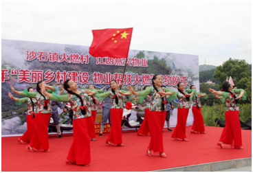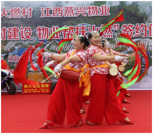 簽約儀式前,燕興物業(yè)員工與火燃村的村民們同臺(tái)進(jìn)行了文藝表演,開場(chǎng)舞《歡天喜地豐收年》、舞蹈《沙石表嫂扭起來》、民樂演奏《喜洋洋》、軍體操《燕興物業(yè)形象展示》、舞蹈《十送紅軍》等節(jié)目輪番上臺(tái),用激情的舞蹈、特色的鄉(xiāng)村小戲和燕興人的精神風(fēng)貌展示等節(jié)目,開啟燕興物業(yè)幫扶火燃村建設(shè)美麗鄉(xiāng)村行動(dòng)。