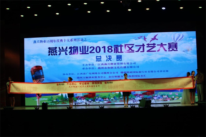 2018年9月2日晚上,江西燕興物業(yè)管理有限公司第五屆社區(qū)才藝大賽總決賽,在贛州市章貢區(qū)奧林匹克廣場虔州大舞臺(tái)隆重舉行。贛州市中小企業(yè)管理局副局長卓秋生,贛州市章貢區(qū)民營企業(yè)管理局局長鐘群,贛州市中小企業(yè)協(xié)會(huì)、章貢區(qū)民營企業(yè)聯(lián)合會(huì)會(huì)長歐陽宇俊等領(lǐng)導(dǎo)嘉賓蒞臨指導(dǎo),燕興物業(yè)董事長劉燕,總經(jīng)理劉南斗,副董事長陽敏,副總經(jīng)理徐桂香、張衛(wèi)東等公司領(lǐng)導(dǎo),以及公司員工、小區(qū)業(yè)主、市民等近千人在場觀看。