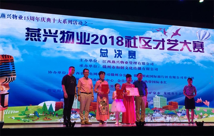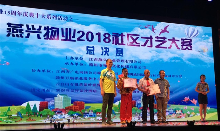本屆社區(qū)才藝大賽是燕興物業(yè)成立十五周年系列慶典活動(dòng)之一,于今年7月1日在章貢區(qū)江濱御景小區(qū)舉辦第一場比賽,并先后在南昌、吉安、上猶、贛縣、章貢區(qū)等項(xiàng)目小區(qū)舉辦了14場初賽,一共吸引了1500多名小區(qū)業(yè)主熱情參與,參賽選手既有67歲的阿姨,也有6歲的小朋友。通過初賽優(yōu)選出30個(gè)節(jié)目參加復(fù)賽,最終有12個(gè)節(jié)目成功晉級,參加今晚的決賽。參賽選手們以飽滿的熱情,生動(dòng)的語言,夸張的肌體,抒發(fā)對生活的熱愛,分享對藝術(shù)的感受。