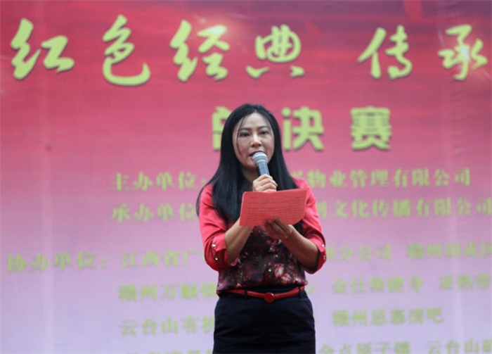 總決賽開始前,劉燕董事長發(fā)表了熱情洋溢的致辭,首先向參加比賽的選手表示熱烈的祝賀!向前來指導的各位領(lǐng)導和來賓表示熱烈的歡迎!并指出:我們燕興物業(yè)舉辦紅色經(jīng)典朗讀大賽,就是要促進紅色文化和愛國主義教育的傳播,增進小區(qū)鄰里感情,推動思想道德建設(shè),提高精神文明建設(shè)水平,進一步培養(yǎng)熱愛祖國、熱愛黨、熱愛家鄉(xiāng)的意識,增強社會責任感和使命感,讓紅色經(jīng)典滋潤我們的心田,伴隨我們健康成長。隨后,章江花園小區(qū)業(yè)主簡國勤代表項目業(yè)主發(fā)言:燕興物業(yè)舉辦紅色經(jīng)典朗讀大賽,是活躍社區(qū)文化、讓紅色經(jīng)典唱響贛州的有益活動,祝愿活動取得圓滿成功!祝賀燕興物業(yè)鑄就新的輝煌!