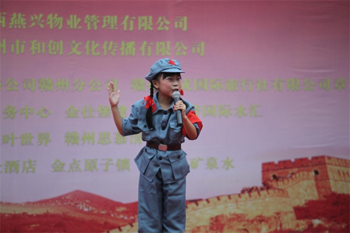 “中國共產(chǎn)黨帶給我們一個新的信仰,人民要獨立自主,民族要獨立解放......”總決賽在上猶縣御景山莊小區(qū)小朋友謝芷馨朗讀《紅色信仰》聲中拉開序幕。在隨后近兩個小時的時間里,參賽選手們在舞臺上盡情展示各自的才藝和激情,既有《我驕傲,我是中國人》《我的祖國》等耳熟能詳?shù)募t色經(jīng)典,也有《紅色的七月》《我愛你,中國》等抒發(fā)愛黨愛國愛家鄉(xiāng)的紅色經(jīng)典,還有《高原茶花》《七律長征》等等。參賽選手們以飽滿的熱情、生動的語言,抒發(fā)對黨和祖國的熱愛,對英烈的懷念,對信仰的堅守,一首首紅色經(jīng)典激起了現(xiàn)場觀眾的共鳴和對往昔崢嶸歲月的回憶。