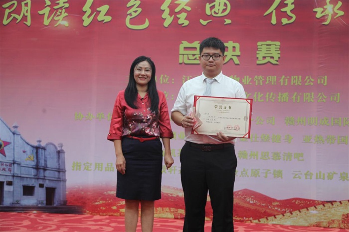 經(jīng)過激烈的比拼,章江花園小區(qū)業(yè)主周俊良憑借《高原茶花》的朗讀,榮獲本次比賽的一等獎,獲得1萬元的現(xiàn)金獎勵;公園一號小區(qū)業(yè)主廖子茜小朋友和章江花園小區(qū)業(yè)主韓建榮獲本次比賽的二等獎,分別獲得2千元的現(xiàn)金獎勵;糧食城小區(qū)業(yè)主危筱萍與郝建光、糧食城小區(qū)業(yè)主劉忠英和吉安市廬陵一品小區(qū)業(yè)主周小鴻榮獲本次比賽的三等獎,分別獲得500元的現(xiàn)金獎勵。